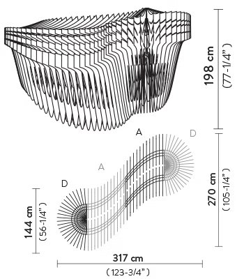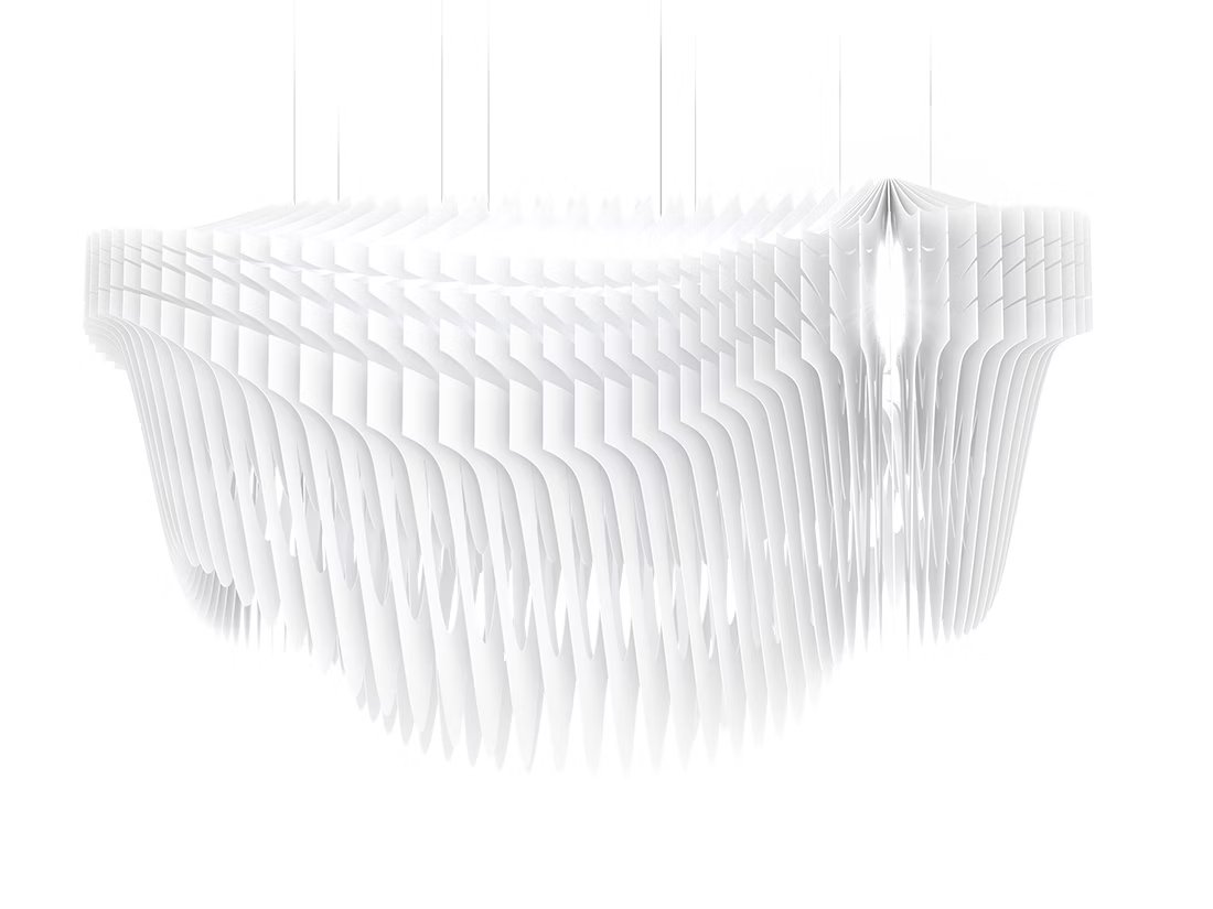 To celebrate the 10 year anniversary of Slamp’s collaboration with Hadid Design Studio, the iconic Aria takes on new form in a modular version. The illuminated system sinuously undulates throughout a space with diverse polycarbonate layers that create visionary fluidity, easily customized to fit any project.