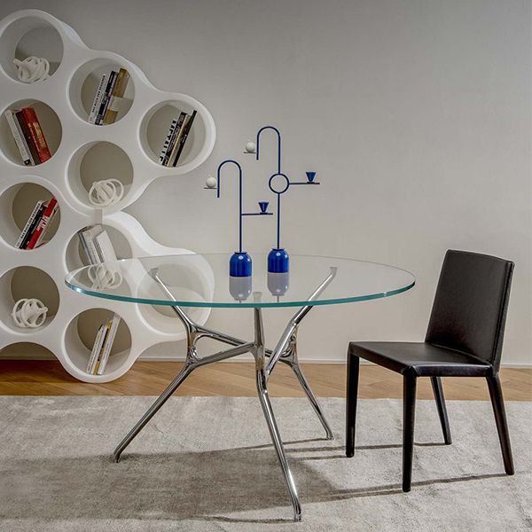A delicate rose in full bloom is embroidered on the back of the Normal chair, by Studio Cappellini, a successful blend between rigour and romanticism. In this chair, the precision of the design is accompanied by a captivating aesthetic flair, embellished by a flourish of countless shades of pink and green. The Normal chair has a frame without armrests and is available in leather and “Stamskin Zen” ecoleather upholstery; also available without embroidery on the backrest.