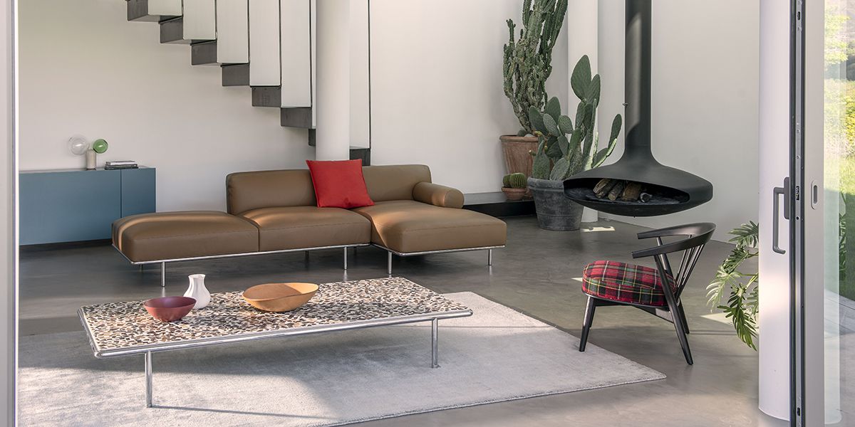For the Cap Martin Sunset sofas, an extremely versatile seating system characterized by clean essential lines, Carlo Colombo found his inspiration in the elegantly vintage atmospheres of the 1950’s.