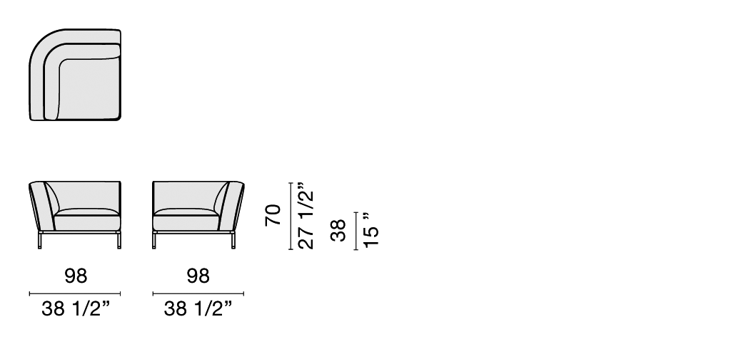 The elegance of the sofas is emphasized by the arm rests, trimmed with double stitching and gros-grain and equipped with concealed zippers. The loose pillows, with detachable covers in leather and fabric, give the collection a hint of relaxed informality which is also reflected in the slender tubular metal structure, studied to make the seats appear extremely light.