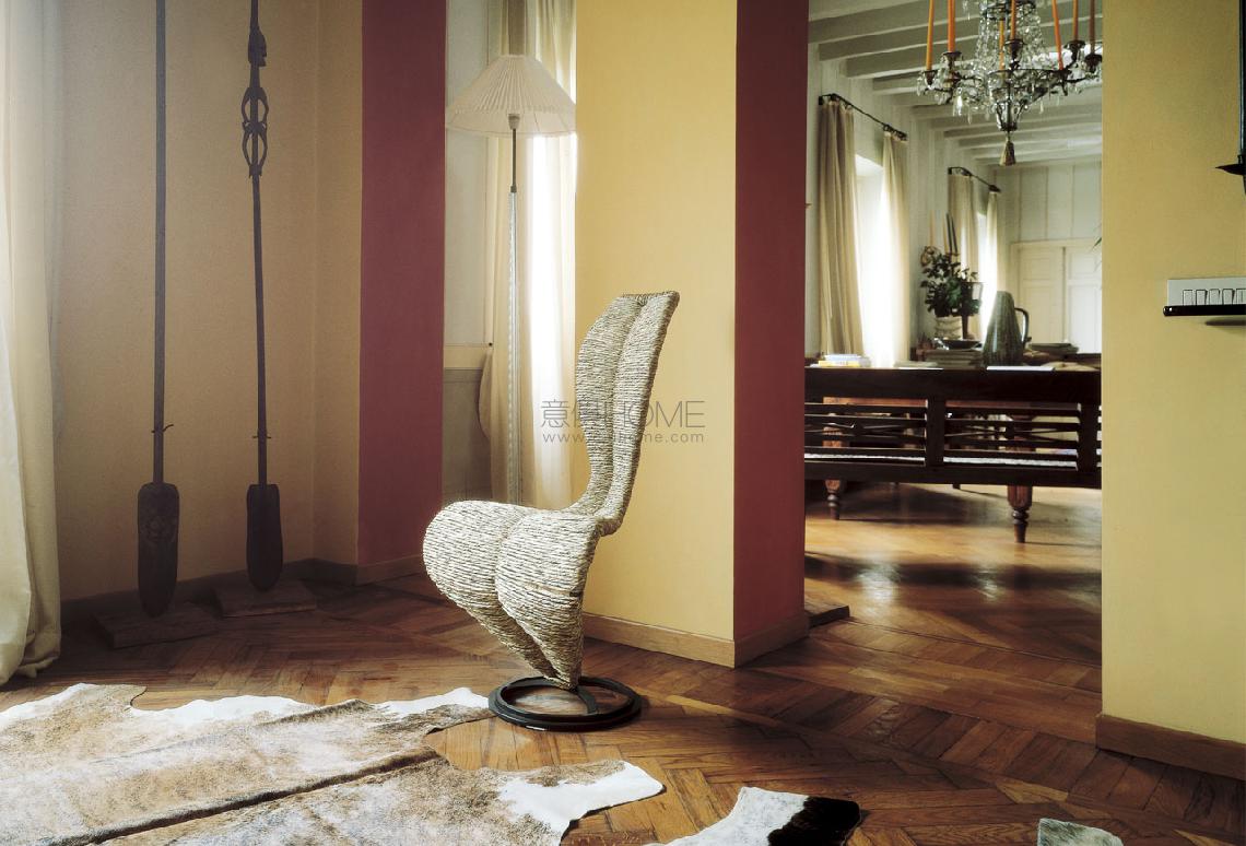 S-Chair has a dark varnished metal structure; the iconic original version is upholstered with marsh straw; alternatively, it is available in wicker or with a fixed cover chosen from a selection of leathers or fabrics from the collection. For the marsh straw version, the weaving is done entirely by hand: a meticulous procedure that requires more than 6 hours of craftsmanship.