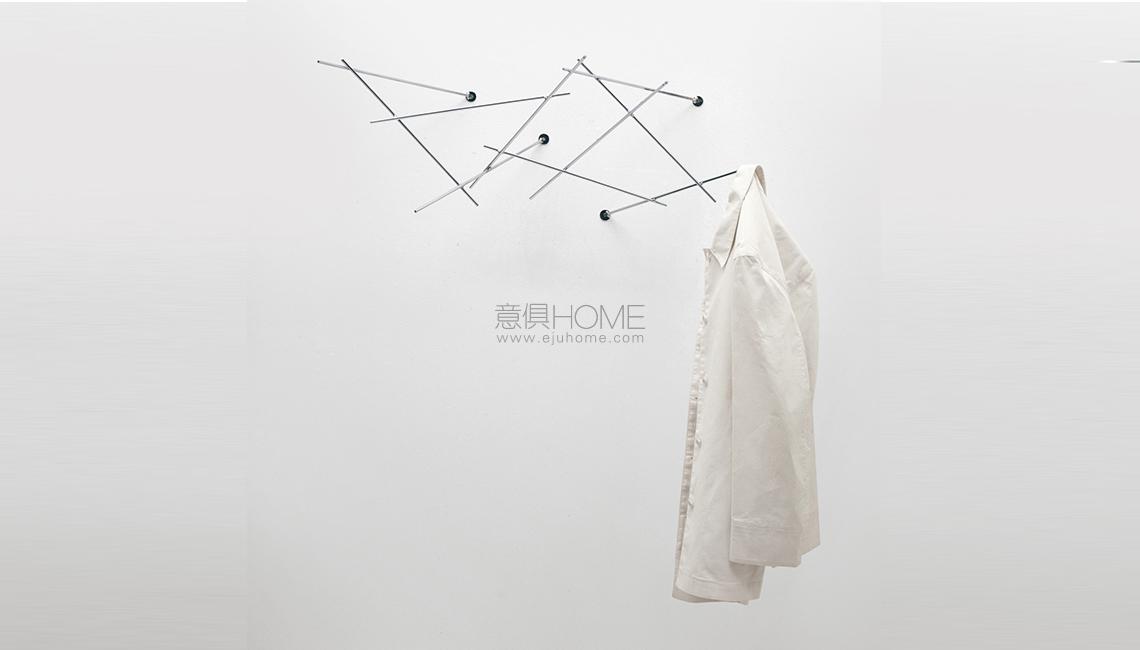 Made out of metal rods, Appendiabiti by Carlo Contin is a wall-mounted coat hanger available in a chromed finish or varnished with magnolia or anthracite-coloured epoxy powder.