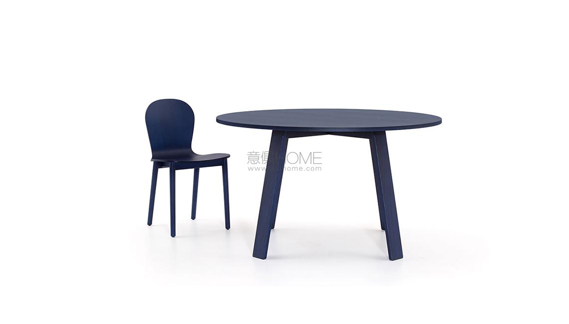 The Bac table, designed by Jasper Morrison, is made of solid ash wood with a bleached, wengé-stained, Shanghai blue finish, or black-stained finish.