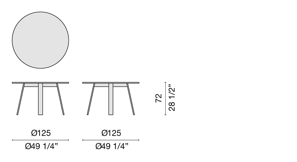 Available in round and rectangular versions; the tops of the Bac tables can be made entirely of wood or animated with a white or black linoleum insert: the latter option is not available for tables in Shanghai blue.