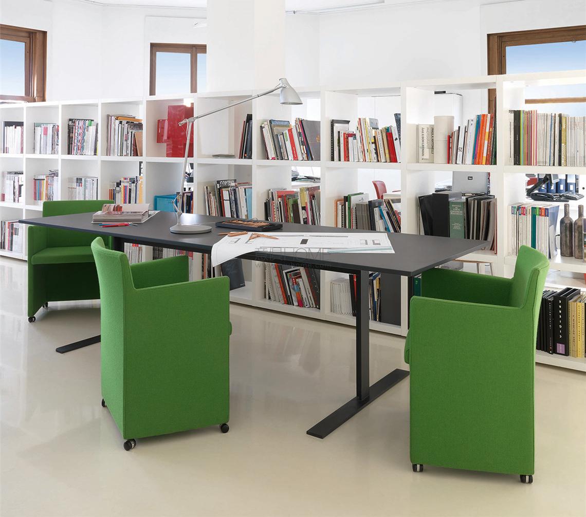 Ideal for both private dining areas and office spaces, the Luxor table by Giulio Cappellini is available in two sizes. The top is made of medium-density lacquered wood fibre with a matte or shiny finish; the metal base is finished with matte-finish lacquer in the same hue as the table top.