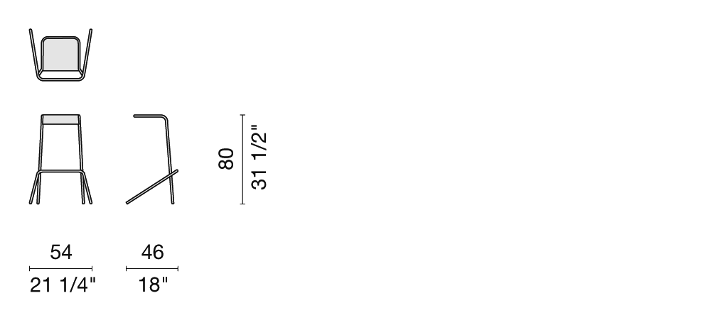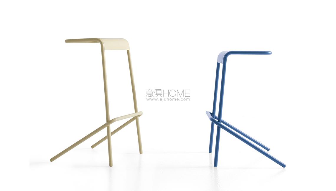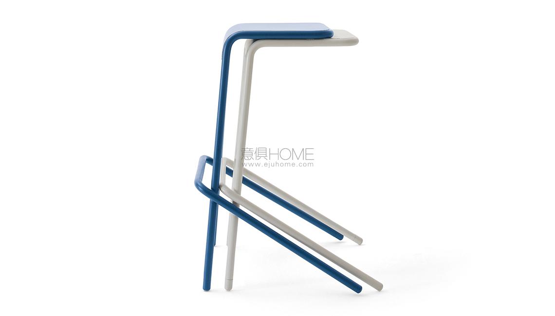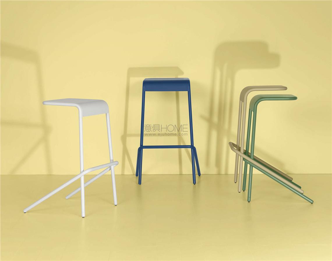 Designed by Todd Bracher, the Alodia stool is stackable and made of tubular metal, with a laser-cut sheet metal seat and feet in black plastic.