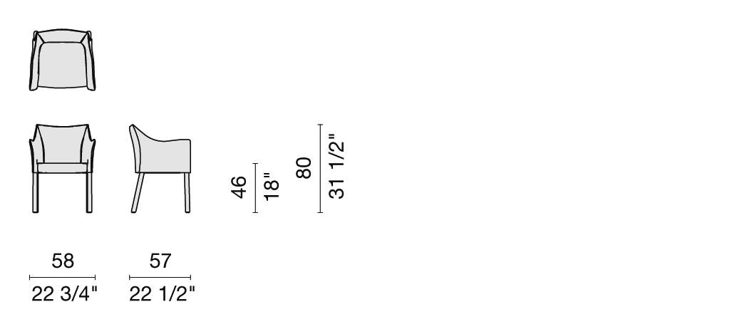 In addition to the refined versions in full-grain or pigmented leather (natural, black or dark brown), the Cap Chair is also available with the seat upholstered with a fixed cover made from a selection of fabrics from the collection. The solid ash legs can have a bleached, black-stained or wengé finish.
