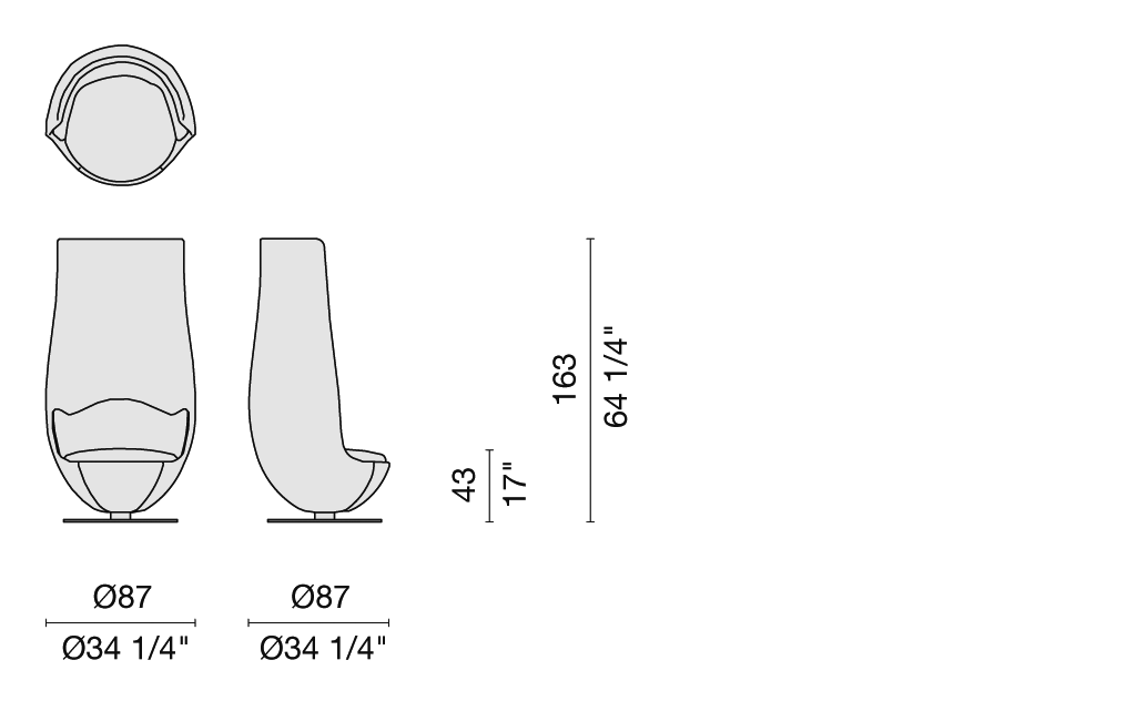 A re-visitation of the classic armchair, with elongated oversized proportions, Wanders' Tulip Armchair has a shell made of fibreglass and resin; padded with soft and firm polyurethane foam; the fixed cover is available in a vast array of fabrics and leathers. The calyx shape of the armchair evokes the silhouette of a flower resting on a brilliant swivelling metal base, varnished with natural aluminium.
