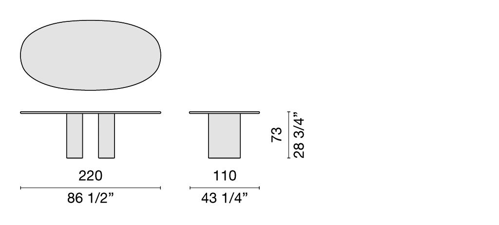 The Dolmen table, designed by Giulio Cappellini, reflects the tradition of classic marble with a twist inspired by the stylistic influences of the 1980’s, here expressed through a carefully studied interplay of shapes.