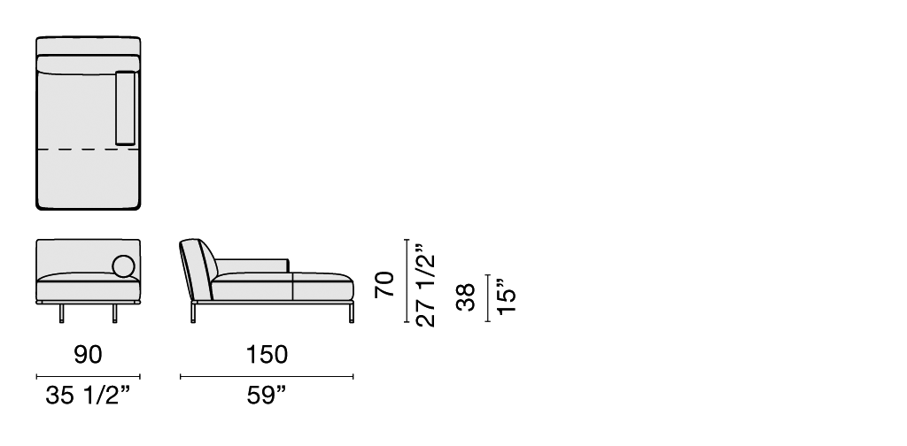 For the Cap Martin Sunset sofas, an extremely versatile seating system characterized by clean essential lines, Carlo Colombo found his inspiration in the elegantly vintage atmospheres of the 1950’s.