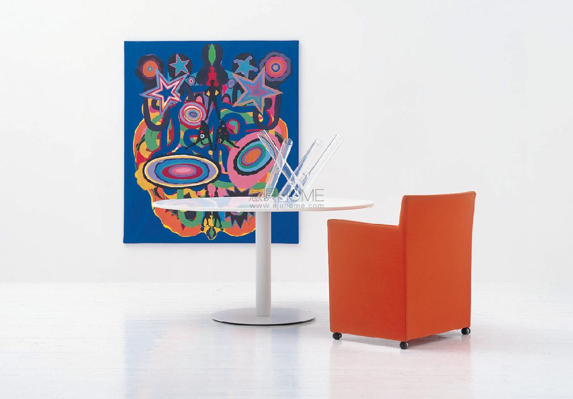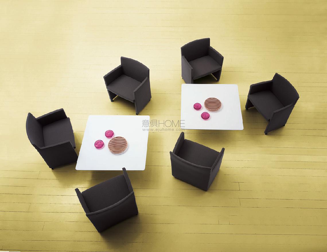 The Supersoft chair by Piero Lissoni, with an accompanying armchair, has a structure made of moulded polyurethane foam reinforced with metal; both the chair and armchair are equipped with armrests. The fixed upholstery comes in a selection of fabrics and leathers from the collection. The chair is available with satined nickel feet or wheels.
