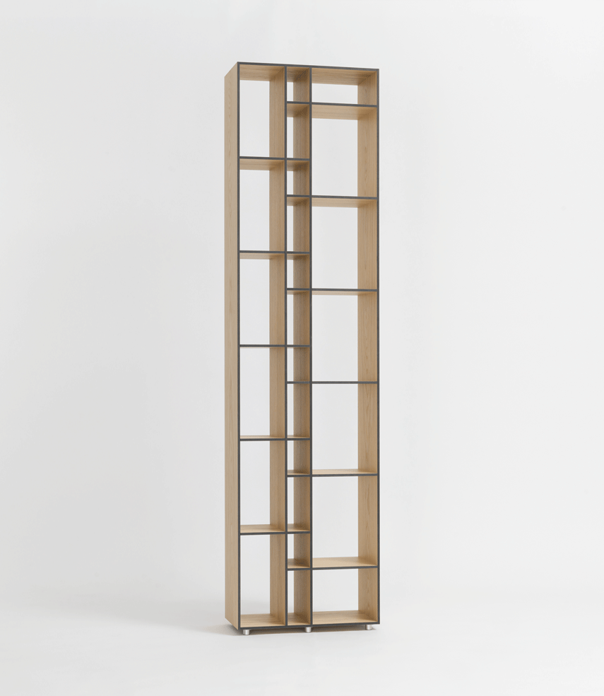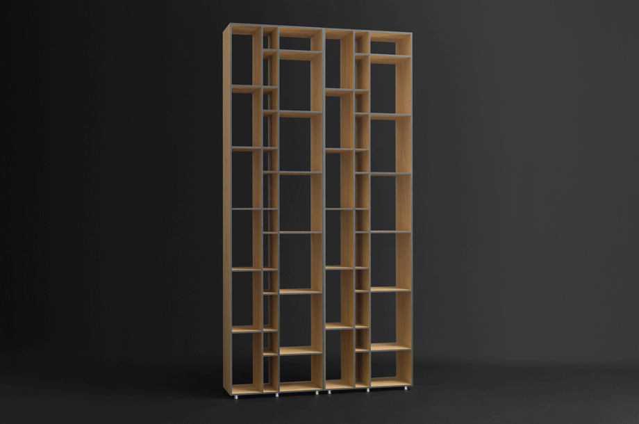 The aesthetic of the shelving is based on graphical structures borrowed from the cladding of Modern architecture. The simple outer-form is an exciting contrast to the differentiated interior. The four compartment sizes can accommodate a wide range of articles ? files and box-files, paperbacks, DVDs and CDs. CODE 2 is ideal for use in all living quarters.