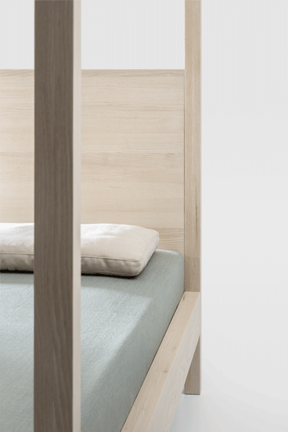 IN HEAVEN is reduced to the outside form. The light construction defines a space in space. The clear design and pleasing scent of naturally treated wood impart the bed with a sense of warmth and radiance. IN HEAVEN – an island of rest.