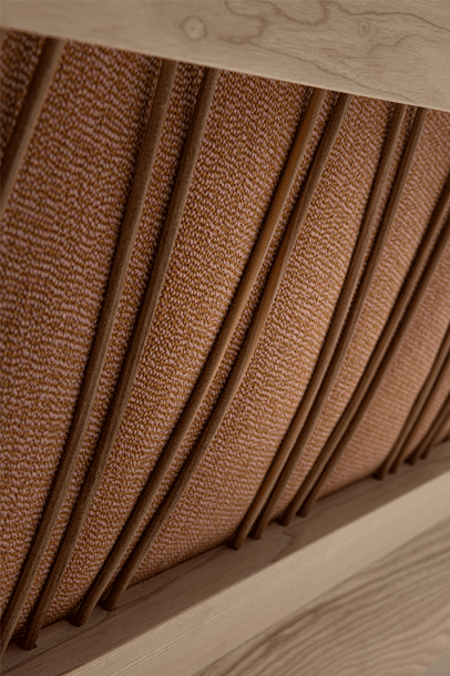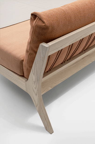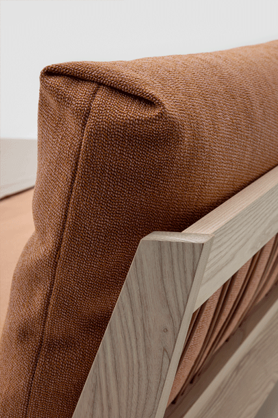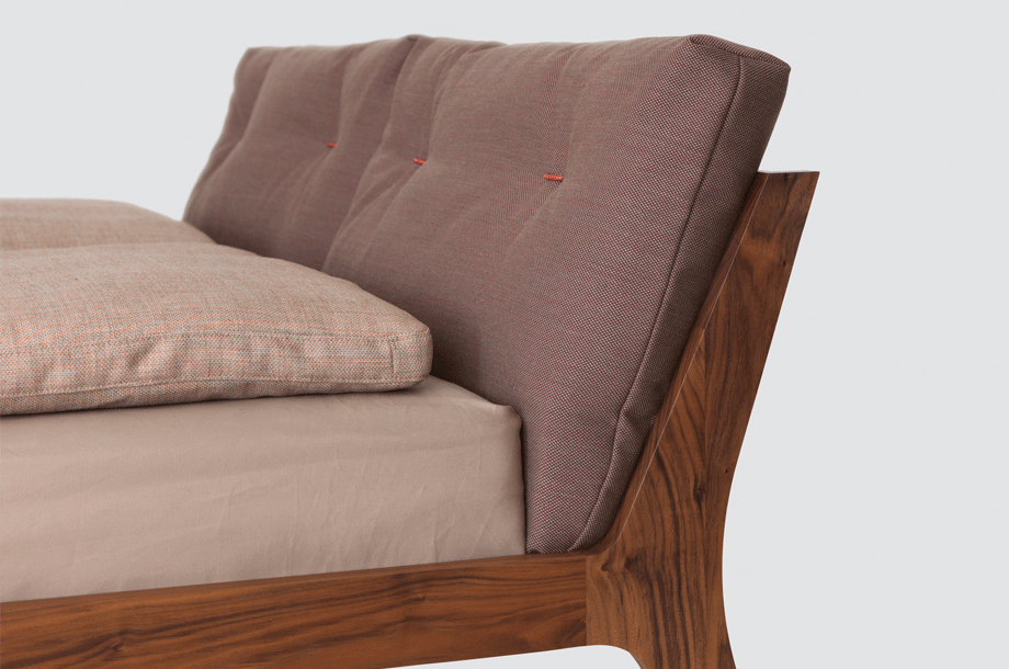 Light, effortless, comfortable and natural – these are the attributes that give this bed its name. Slimline material profiles, fine lines, a delicate frame and soft upholstery materials are the hallmarks of this bed. A touch of sophistication that doesn‘t steal the limelight but which adds definition to the bed‘s character is the lacing of bend leather straps in the back element, providing essential support for the soft back pillows.