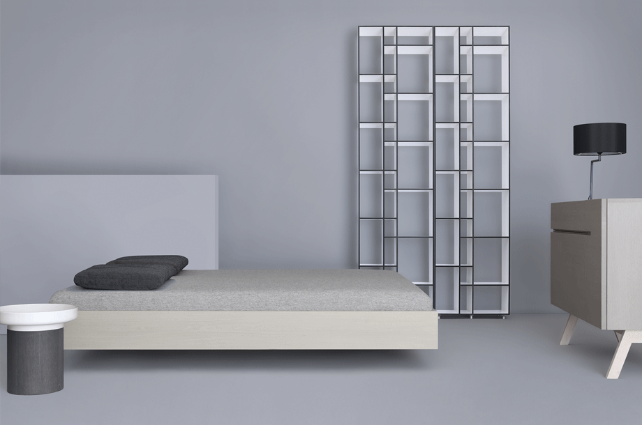 The puristic design of SIMPLE foregrounds the living material. The lightness of the construction is intensified by the floating frame. SIMPLE – the bed in the simplest form and function. The bedside tables DEPO, DOZY and WAITER & WAITRESS are the perfect accompaniments.