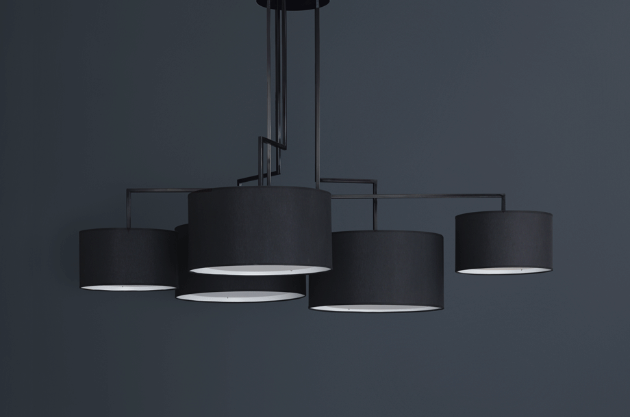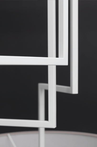 The desire for simplicity and the pleasure in pure design led to a geometrical abstraction of natural branch forms. The NOON range of lamps is rigidly constructed, the textile lampshades give a soft light. The matt black or matt white powder coated finish gives the iron a soft and warm appearance. The intrinsic value of the lamps is a product of material and hand-crafted details.