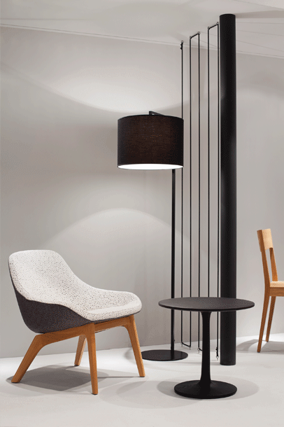 MORPH LOUNGE brings together an unusual combination of materials: The solid wood frame carries a comfortable upholstered shell. The positioning of the legs gives the chair a unique posture, as if it had a support and a free leg. The softly formed seat invites to take a seat. Due to its compact dimensions this straightforward chair exudes an air of lightness that requires only a small area. He feels at home in a wide diversity of spacial situations.