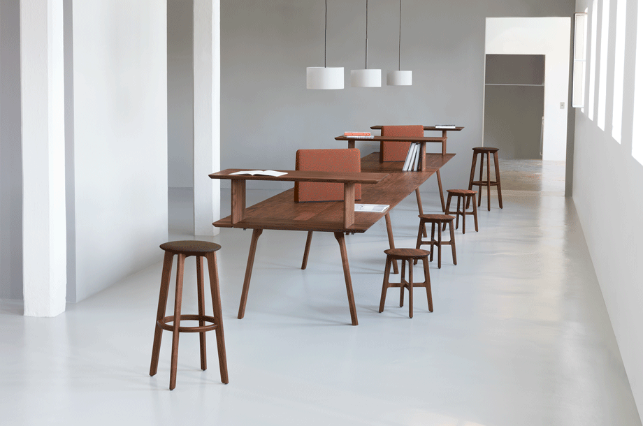 With its connectable modular components, RAIL offers a range of tables that can be combined to create structured spaces in offices, studios or agencies. Jointless table tops and movable trestles defi ne the system’s ?studio‘ character. Quickly and easily extendable, RAIL allows for flexible interior concepts and for functional, personalised workplaces. RAIL’s light and studio-like appearance can also be transferred to the home: in a few simple steps, the conference table can be turned into a large dining table for the home.