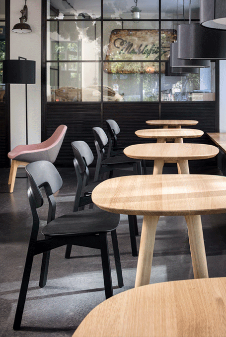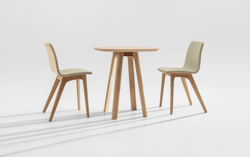 RAIL Café, Dine, Snack – communicative islands in space. In addition to the connectable RAIL system tables there are also individual table designs: The independent table-top formats of high tables, dining tables and café tables combine the advantages of rectangular and round tables, turning them into communication islands in the office landscape.