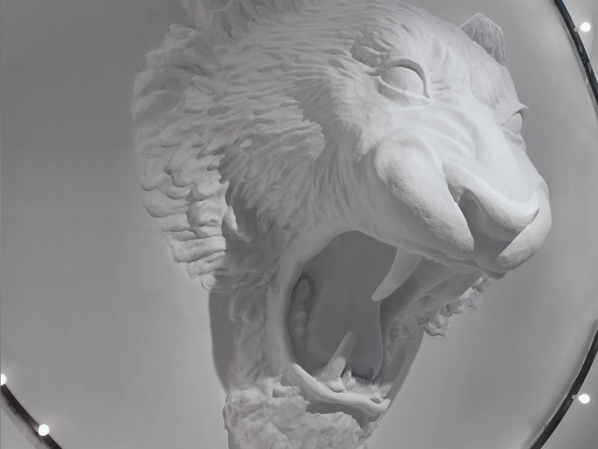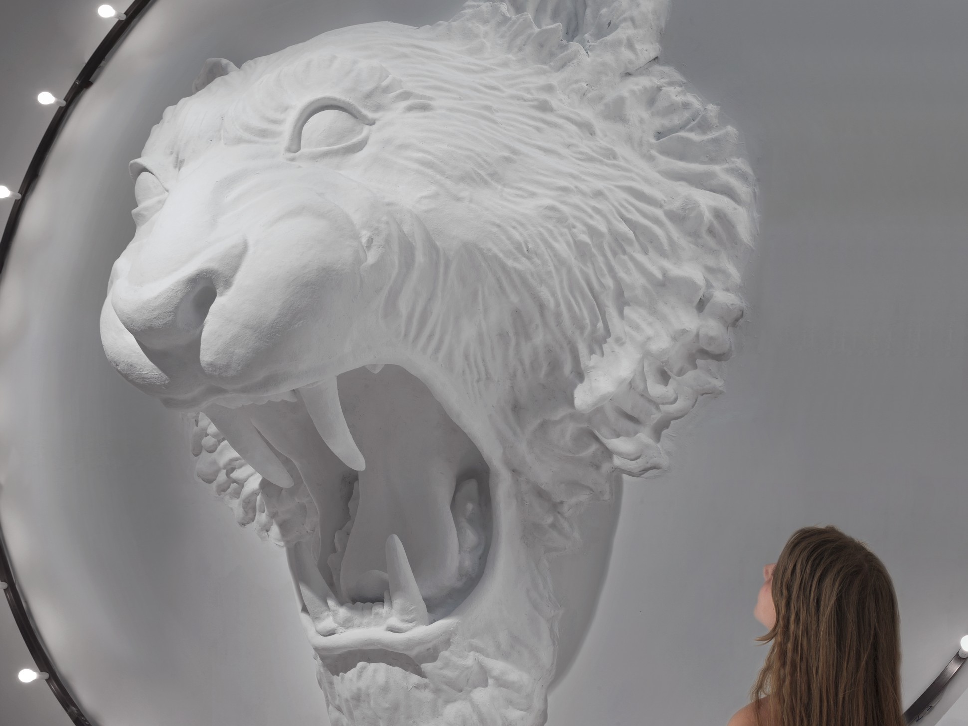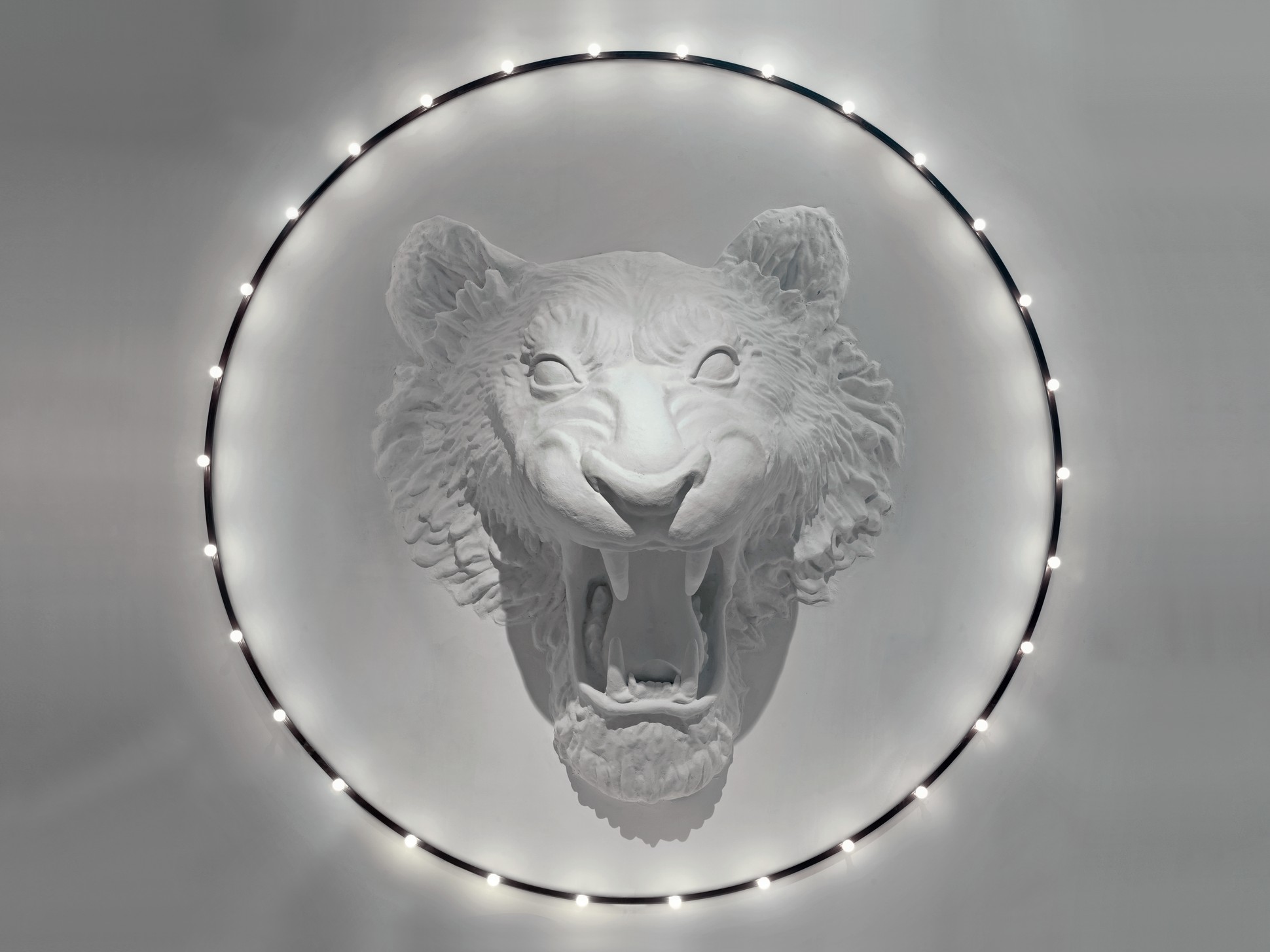 Un’installazione di grande impatto e dalle dimensioni importanti. Ispirata ad un immaginifico circo, in cui un leone ruggente sembra saltare attraverso un cerchio luminoso, questa lampada da parete cattura gli sguardi e crea attorno a sé uno spazio dall’atmosfera onirica e potente.
