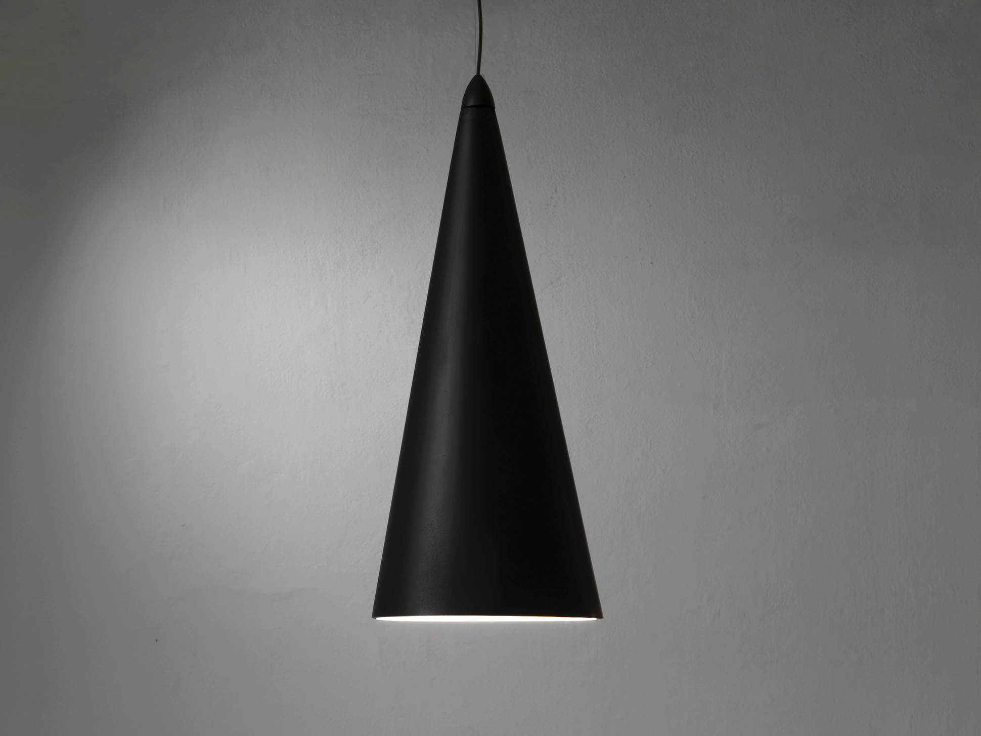 Una lampada a sospensione dalla inconfondibile geometria. Vive perfettamente da sola, specchiandosi idealmente in un tavolo rotondo, ma si fa notare anche in multipli, regalando all’ambiente un effetto di luci circolari che si accostano, si riconoscono e si fondono. Superba nell’illuminare Miss.