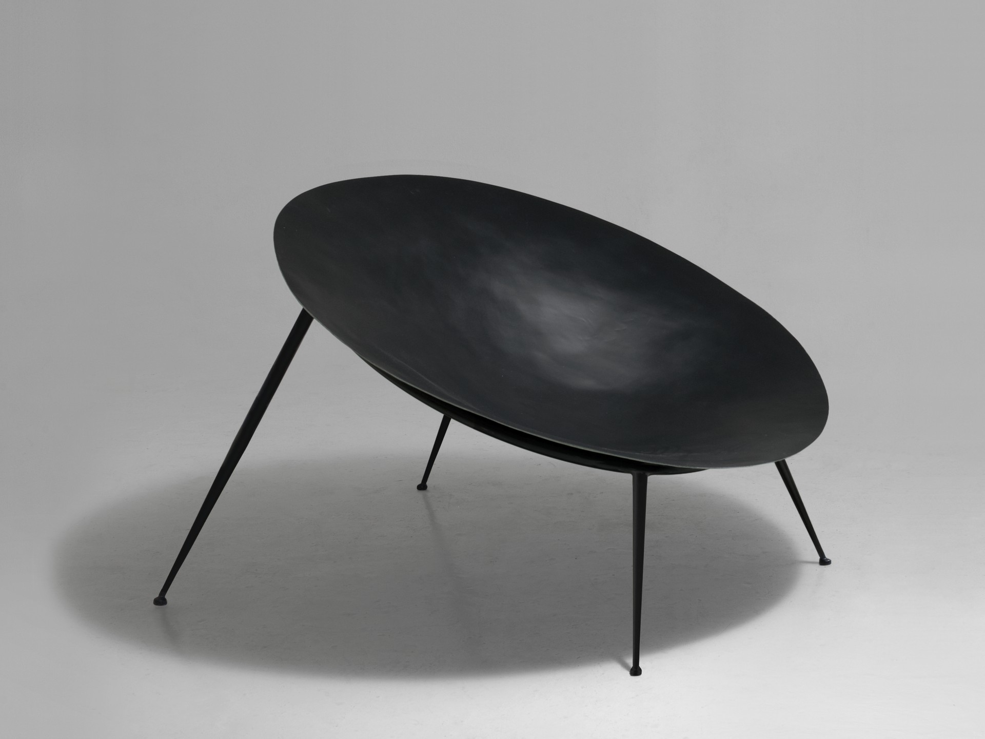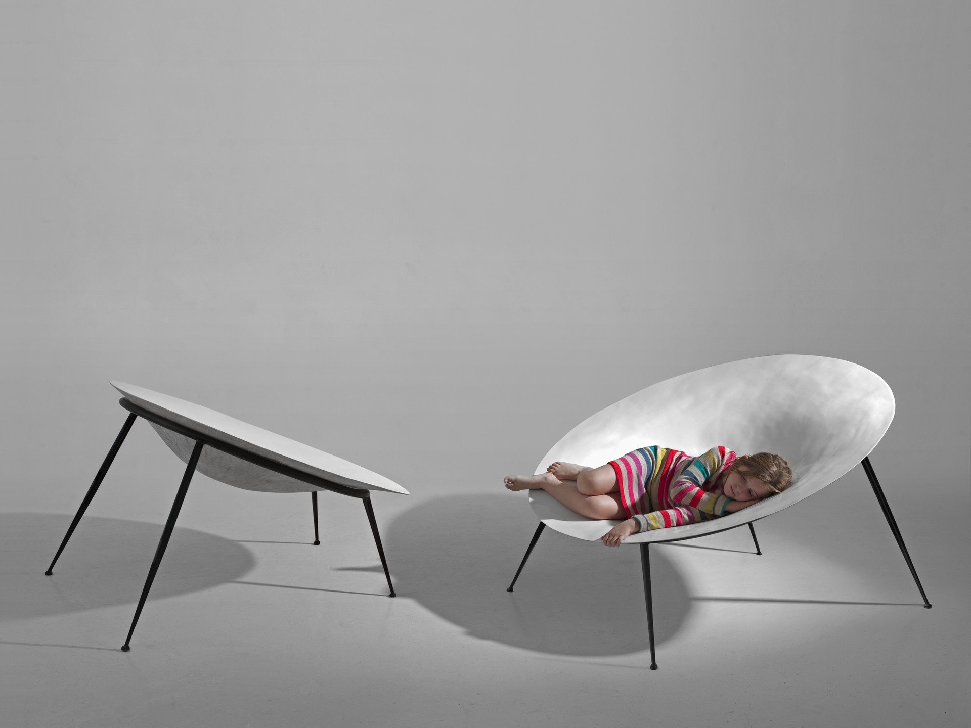 Lasciarsi cadere nella seduta di questa poltrona, avvolti dalle curve del suo guscio di vetroresina, regala un inaspettato ristoro. Sostenuti da una struttura ampia, che la circonda e la sorregge con gambe sottili e ben distanziate, si apprezza la sua stabilità e ci si abbandona tranquilli al suo abbraccio.