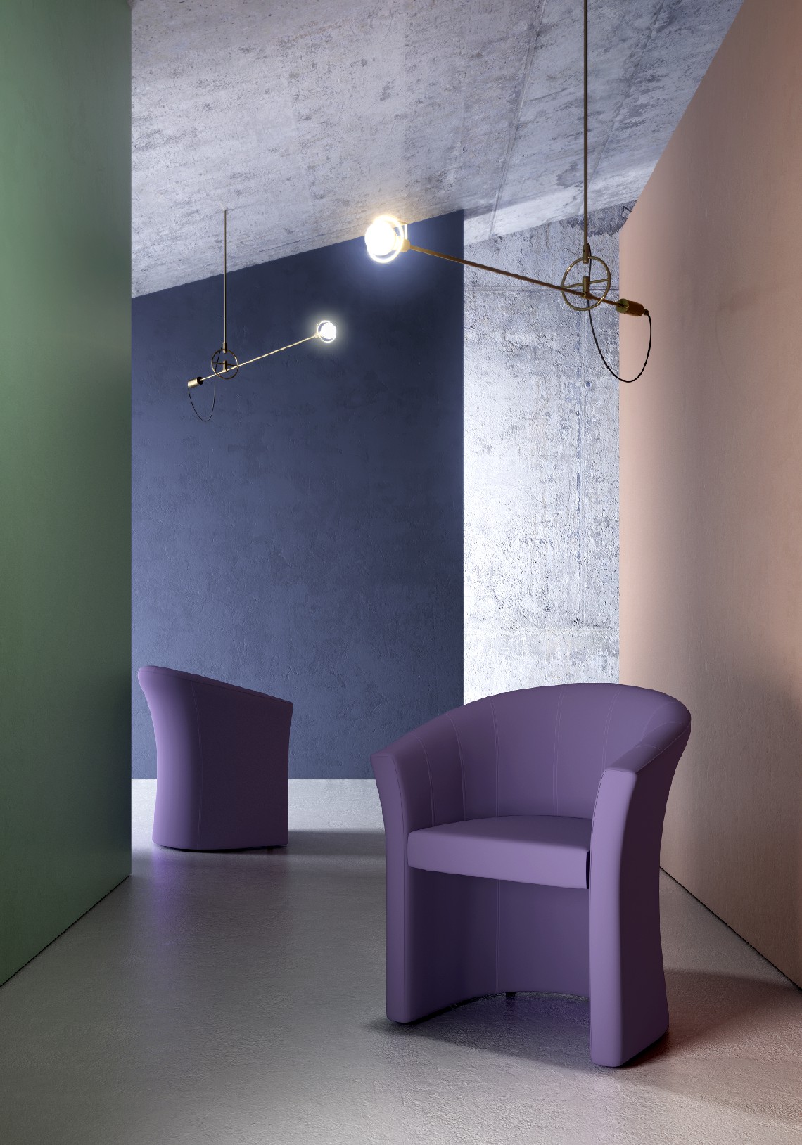 Armchair for meeting and waiting areas available in one-color and two-colors versions. The structure is in steel filled with self-extinguishing polyurethane resins.