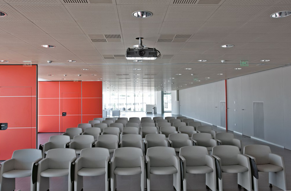 Polyfunctional armchair with fixed or pliable side arms suitable for meeting and conference rooms.