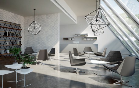 Armchair for relaxing, waiting and reception areas, with different options of either fixed or swivel bases.