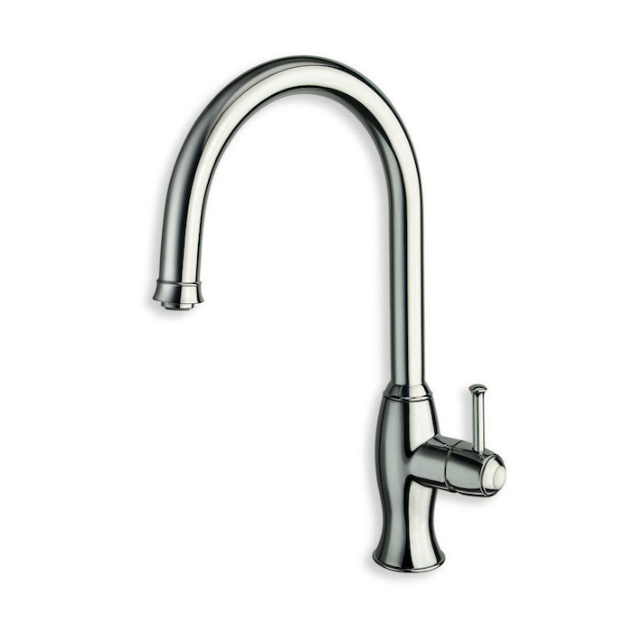 Miscelatore monocomando cucina, bocca orientabile, monoforo da piano, con miscelazione meccanica a doppio scatto laterale destra, H. 413 mm