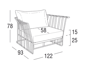 Sedia con braccioli in alluminio con trattamento a polveri, intrecciata con sunrope. L'essenzialità delle forme viene arricchita dal bracciolo finemente lavorato, gli intrecci in sunrope, invece, le conferiscono forza e resistenza. Ideale per l’arredamento contract è pratica da gestire in quanto può essere facilmente impilata. Sedia per esterno, perfetta per ristoranti.