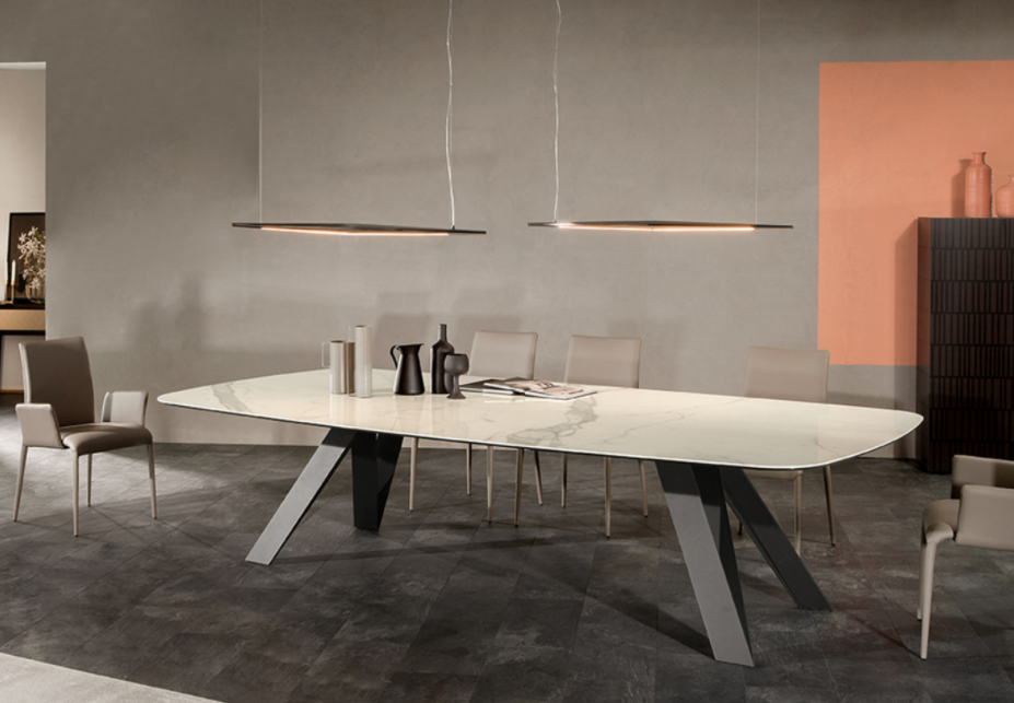 Una rete metallica con angoli precisi e diretti, che puntano rapidi ai ripiani in legno massello di noce o rovere, o ancora in rivestito legno con particolari in massello. La qualità e il valore tecnologico del metallo si tingono di bianco opaco, oro opaco, grigio carbone o rosa agata, creando impatti di luce e toni adattabili ai gusti più raffinati.