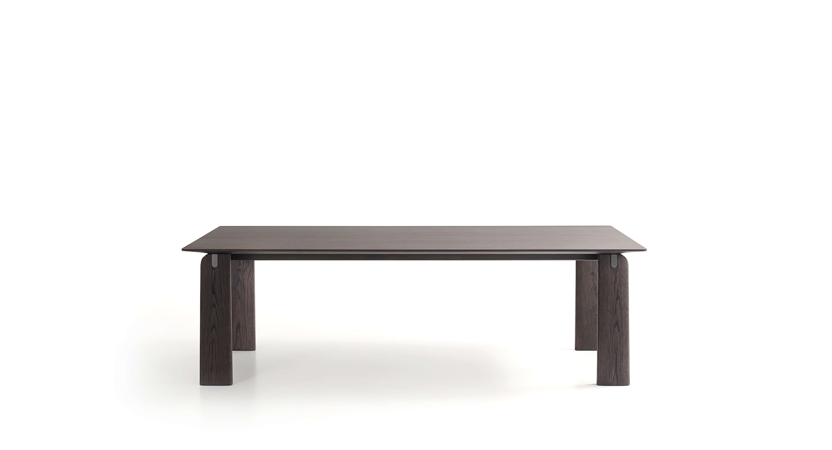 Jiku is a table designed by Federica Biasi, a modern proposal that brings together oriental inspirations and Nordic aesthetic rigor. Available in various sizes, with rectangular or oval tops, it can be placed in various spaces, thanks to the versatility and variety of finishes of the surface and material combinations. Its legs are in thermotreated oak, wide and slightly curved at the top, become a distinctive design element that gives the table a strong personality. A delicate metallic insert becomes a detail that aims to enrich the table's aesthetics: a modern element that creates an apparent visual contrast with the wood. Jiku represents a perfect combination of functionality and style, destined to become the focal point of a dining room or living space and the protagonist of conviviality.