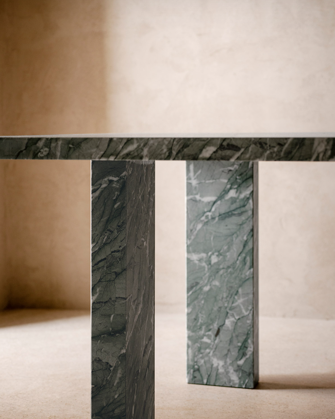 Simple and monumental, Clockwise reveals its subtle humour only to those who manage to grasp the play of steps that define the position of the legs and the alternation of their positioning in the corners of the top. Born from the first collaboration between Tacchini and designer Michael Anastassiades, it is a table with an important presence, which at the same time evokes a sense of lightness in the legs that chase each other almost dancing, rotating around a choreography that suggests the right dance steps to experience it fully. At different rhythms, following the metaphor of a gesture, the movements and activities that take place around the table can thus be told from time to time unexpectedly, as fluid and informal as the environments in which the table itself can be placed.