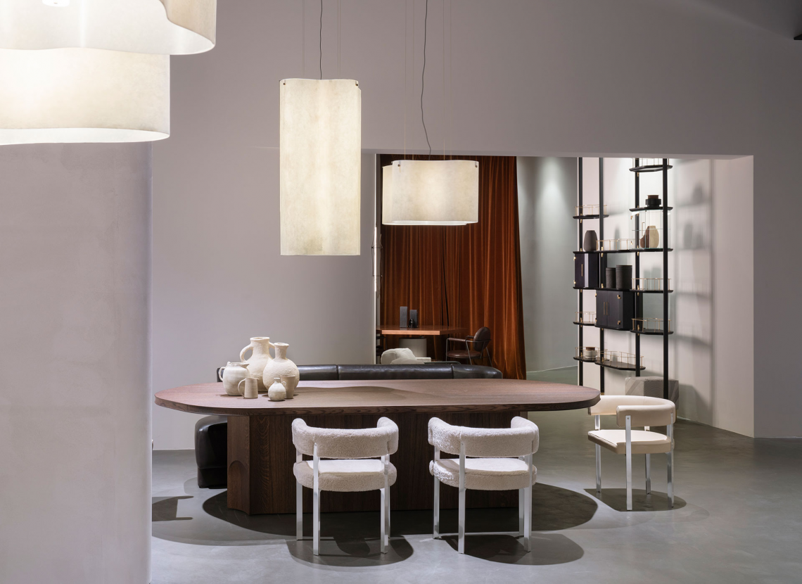 And so, from the centre to the outside, Grace acts as a sounding board for the room. The lines it traces appear to be those of an ideal city, a microcosm of perfect proportions. The solid brushed oak, available in caramel, anthracite and tobacco shades, allows Baxter to apply all its savoir-faire in an exercise of style spanning from the form to the very life of the material. Wood is the bearer of an ancient message, of tradition and wisdom that become design: by nature, it will change with us, taking on the beauty that only time can give to the objects with which we dress our everyday lives.