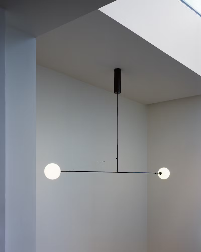 This collection of fixtures uses the standard unit of the light tube as a measure. Through the alternation of 1m and 0.5m modules, it creates a rhythmic language of recording space. The designs evolve as a parallel progression of rods, combining five variations of standard linear LED bulbs and metal tubes of the same diameter. With this series, Michael Anastassiades expands the compositional possibilities of some of the most structural elements of lighting, engaging the viewer in a rigorous yet playful exercise in measuring.