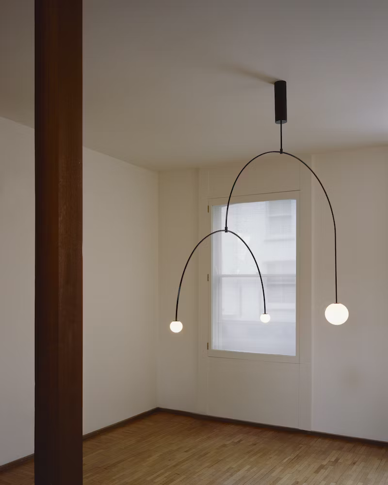 This collection of fixtures uses the standard unit of the light tube as a measure. Through the alternation of 1m and 0.5m modules, it creates a rhythmic language of recording space. The designs evolve as a parallel progression of rods, combining five variations of standard linear LED bulbs and metal tubes of the same diameter. With this series, Michael Anastassiades expands the compositional possibilities of some of the most structural elements of lighting, engaging the viewer in a rigorous yet playful exercise in measuring.