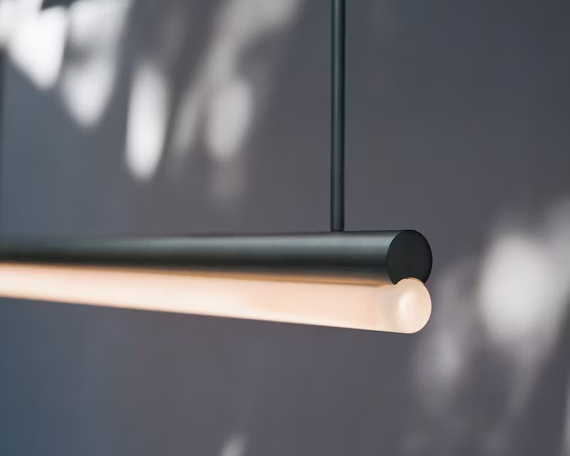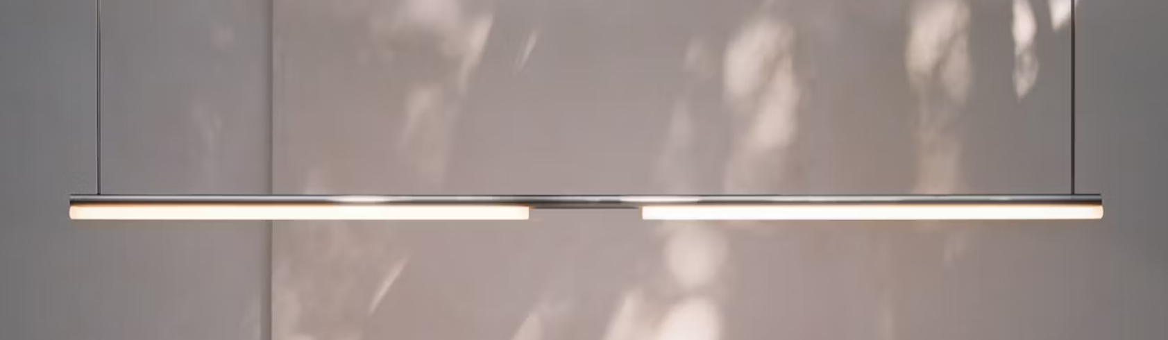 This collection of fixtures uses the standard unit of the light tube as a measure. Through the alternation of 1m and 0.5m modules, it creates a rhythmic language of recording space. The designs evolve as a parallel progression of rods, combining five variations of standard linear LED bulbs and metal tubes of the same diameter. With this series, Michael Anastassiades expands the compositional possibilities of some of the most structural elements of lighting, engaging the viewer in a rigorous yet playful exercise in measuring.