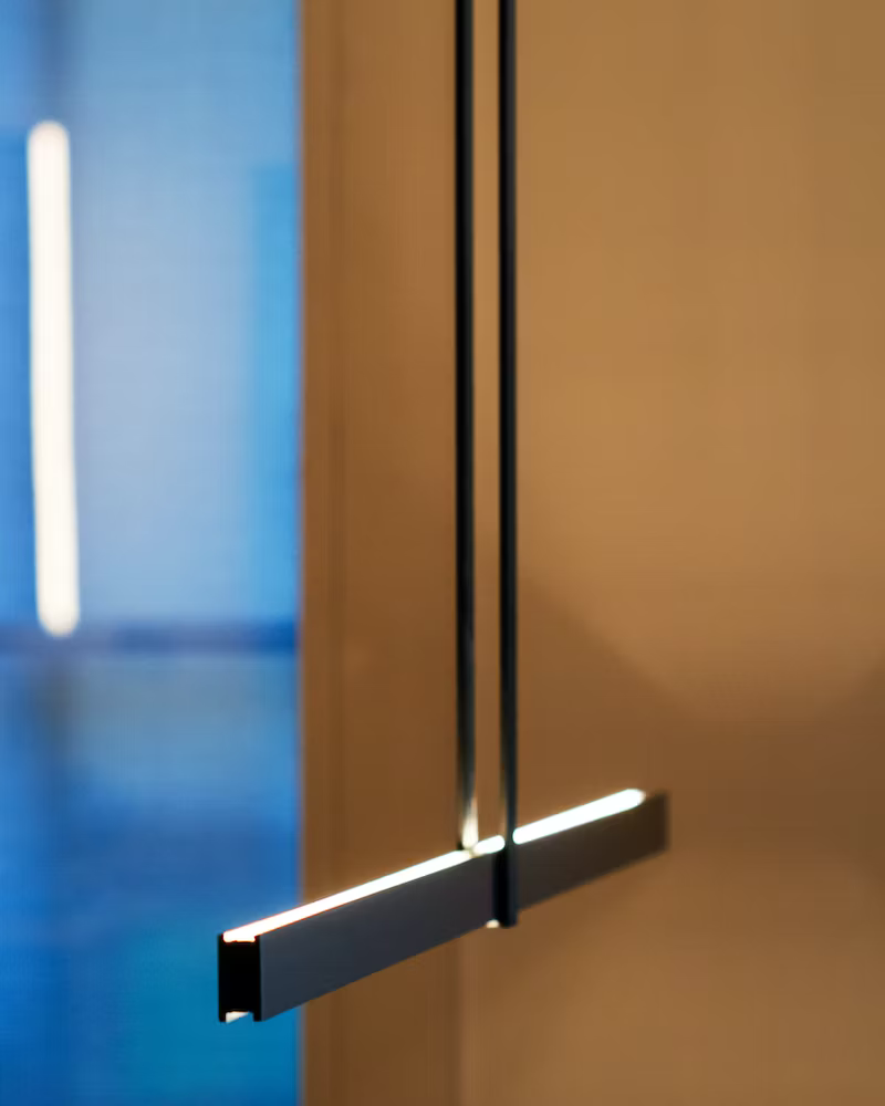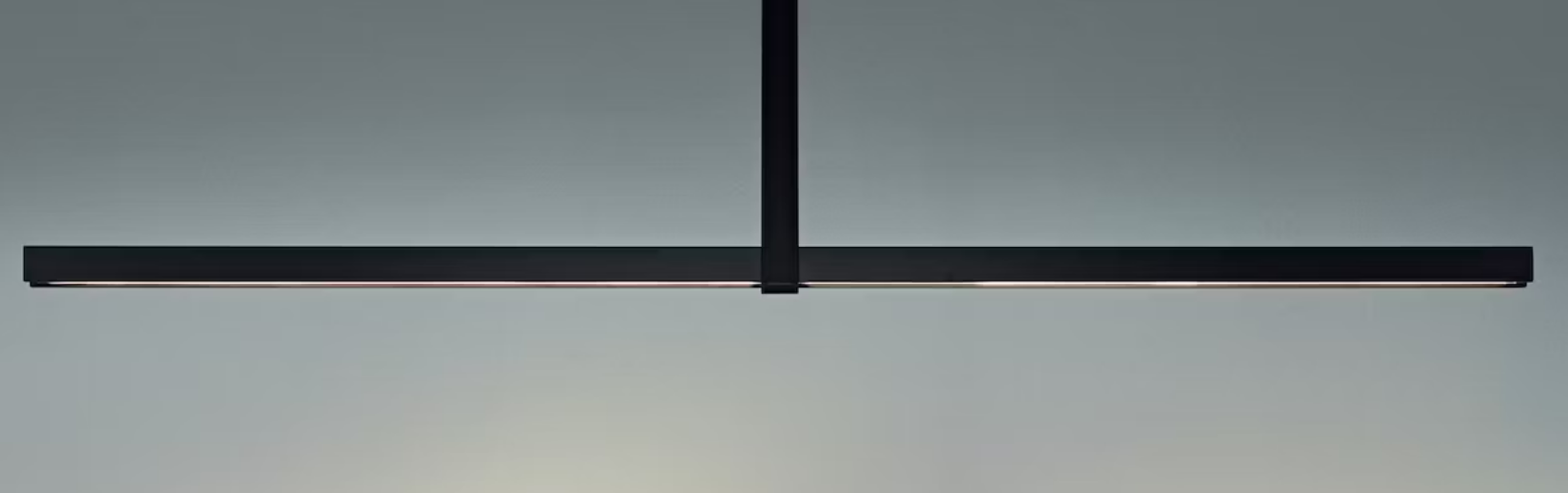 This collection of fixtures uses the standard unit of the light tube as a measure. Through the alternation of 1m and 0.5m modules, it creates a rhythmic language of recording space. The designs evolve as a parallel progression of rods, combining five variations of standard linear LED bulbs and metal tubes of the same diameter. With this series, Michael Anastassiades expands the compositional possibilities of some of the most structural elements of lighting, engaging the viewer in a rigorous yet playful exercise in measuring.