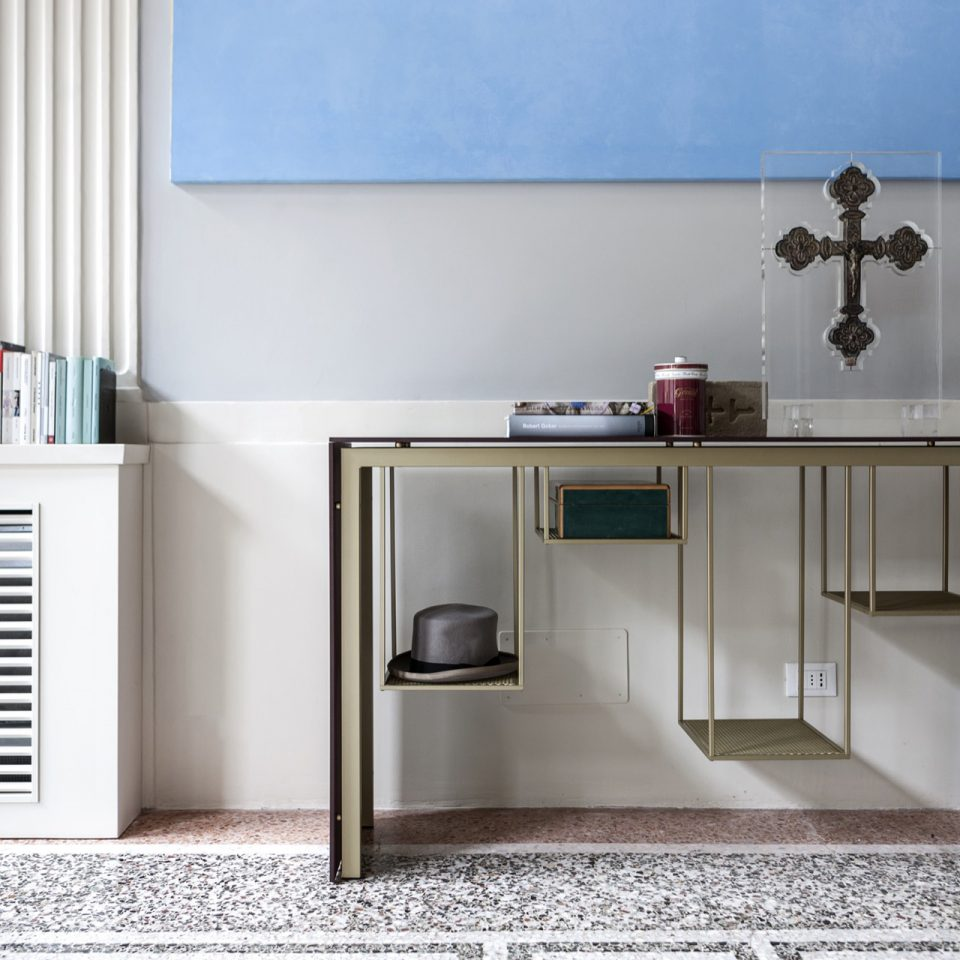 Beam è un tavolino basso multifunzione realizzato da una trave in legno antico di recupero completo di piano in metallo verniciato piombo. L'aspetto rustico del legno, volutamente non trattato, consente di sfruttarne appieno il valore espressivo. Le irregolarità di questo legno antico sono da considerarsi un pregio e non un difetto, che pertanto caratterizzano ogni singolo pezzo.