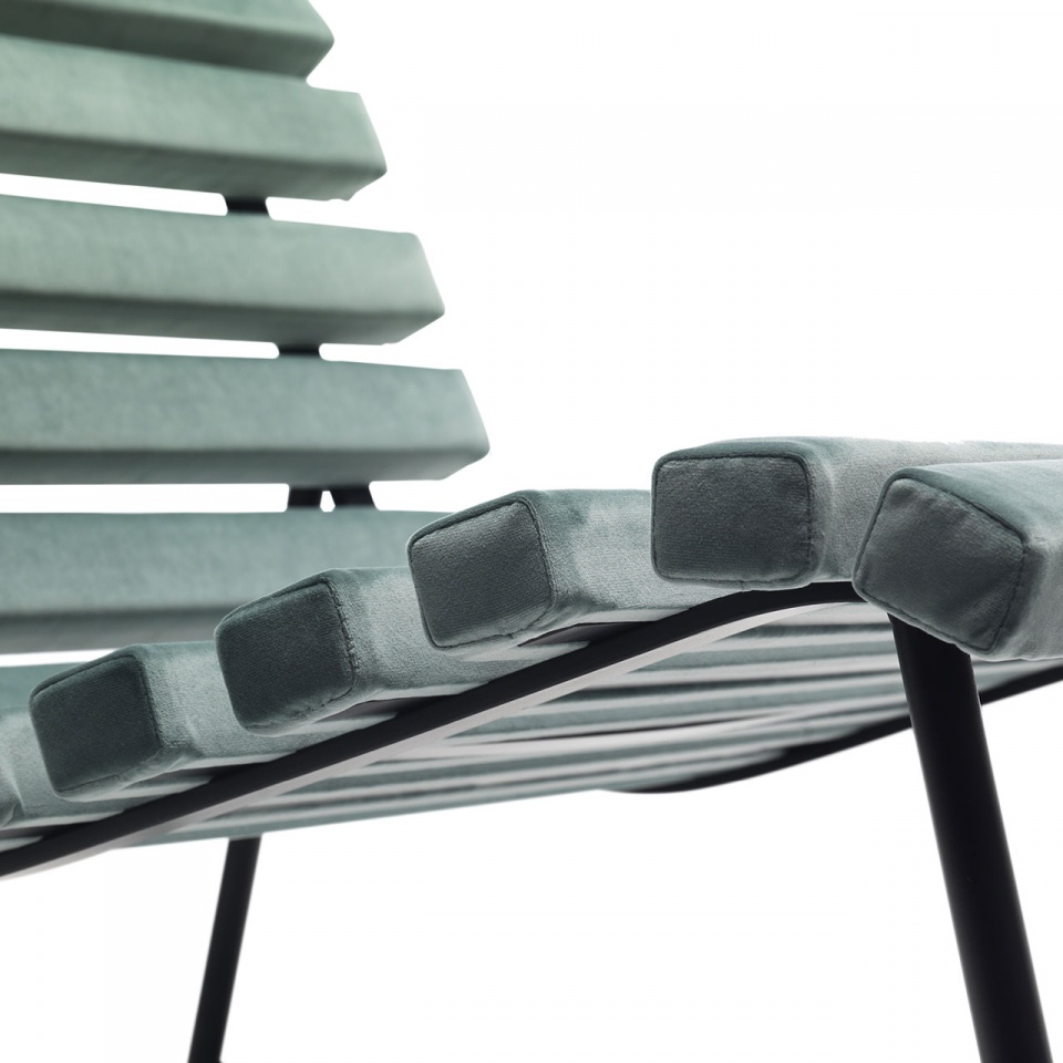 La poltrona 7 Pillows è in massello di faggio con struttura disponibile in versione naturale oppure tinta nei colori come da campionario, completa di 7 cuscini in piuma con rivestimento sfoderabile. Questo progetto nasce con la voglia di creare una poltrona che racconti come è fatta, esaltando l'artigianato, visibile nella struttura completamente scoperta, e comunicando la semplicità con cui è fatta l'imbottitura. L'immediatezza ironica dei cuscini fissati con delle cinghie gioca di contrasto con il fusto in legno, interamente realizzato a mano.