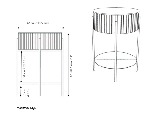 Die grazilen Beistelltische TWIST 04 und TWIST 06 box k?nnen viele raffinierte Einsatzwünsche bedienen! Sie zeigen sich elegant als aparte Tische, vielseitig als kleine Bar, dezent als Aufbewahrungsort oder beeindruckend als stilvolle Pflanzgef??e. Sogar R?ume lassen sich so ganz l?ssig in harmonische Bereiche unterteilen. Beim Multitalent aus pulverbeschichtetem Stahl f?llt immer die aparte Kombination aus Eleganz und Struktur ins Auge. Denn der Korpus scheint in feine Falten gelegt zu sein, der so für sch?ne Reflexe sorgen kann.