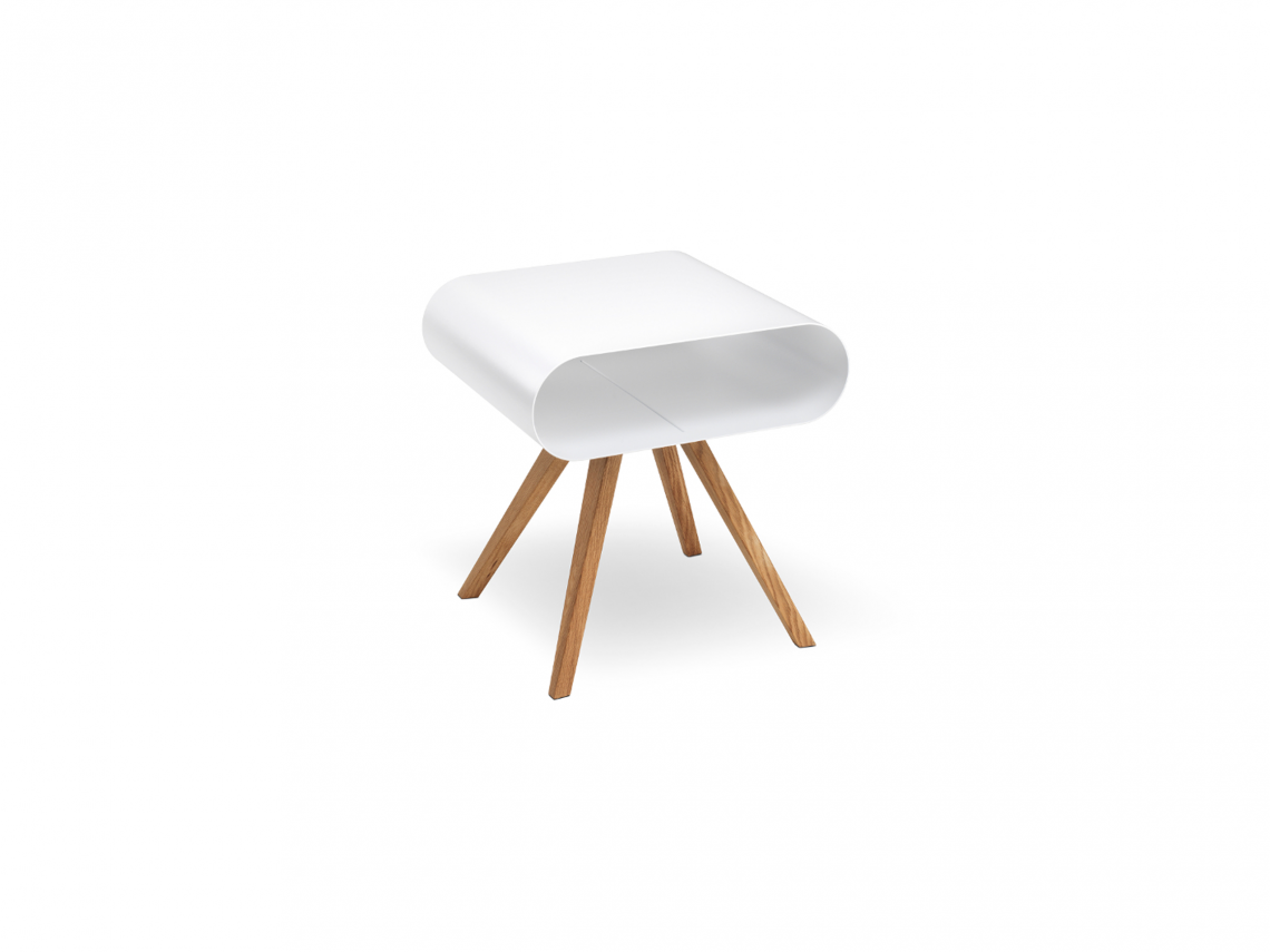 Ein Beistelltisch für alle Flle: LO 12 setzt starke Akzente und ist vielf?ltig einsetzbar. Mit einer Ablage aus gebogenem Metall und getragen von einem massivem Eichen-Fugestell begeistert er uns mit seinem frischen Look. Der perfekte Begleiter in jedem Raum, ob als Einzelobjekt oder besser noch in Zweier-Kombination, zum Beispiel als Nachttische.