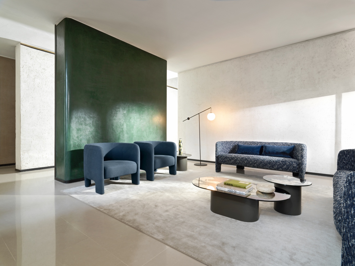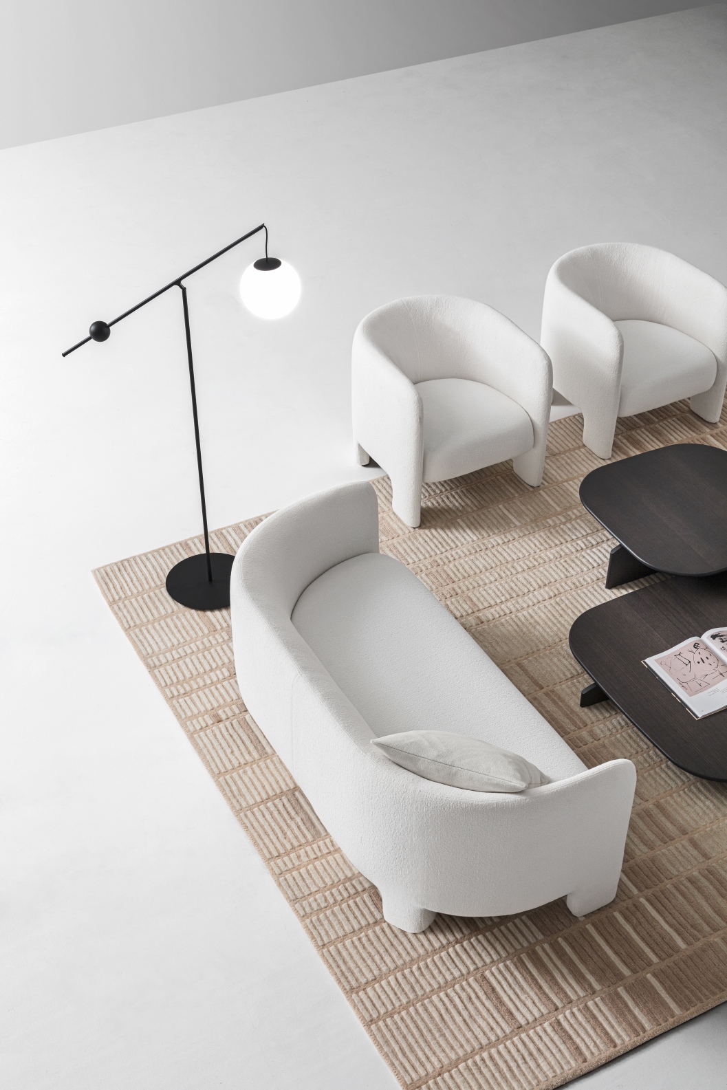 La collezione Cali si amplia grazie a una famiglia di imbottiti dalle linee puntualmente sinuose e avvolgenti. Il design della poltrona e dei divani – a due e tre posti – spicca per un marcato senso di stabilità, enfatizzato da gambe forti.