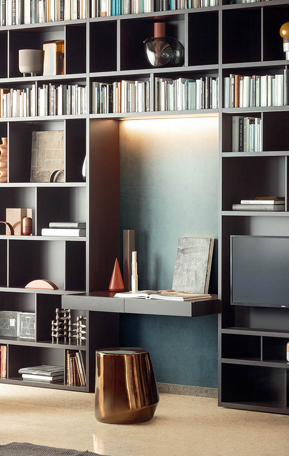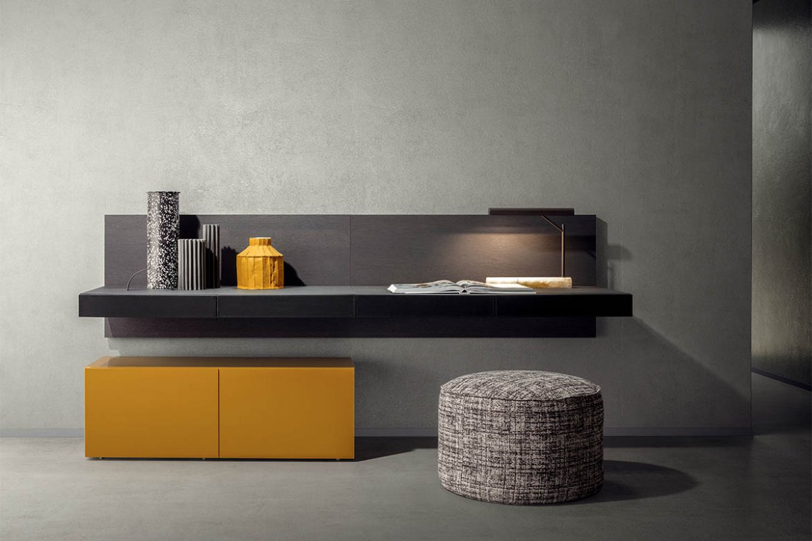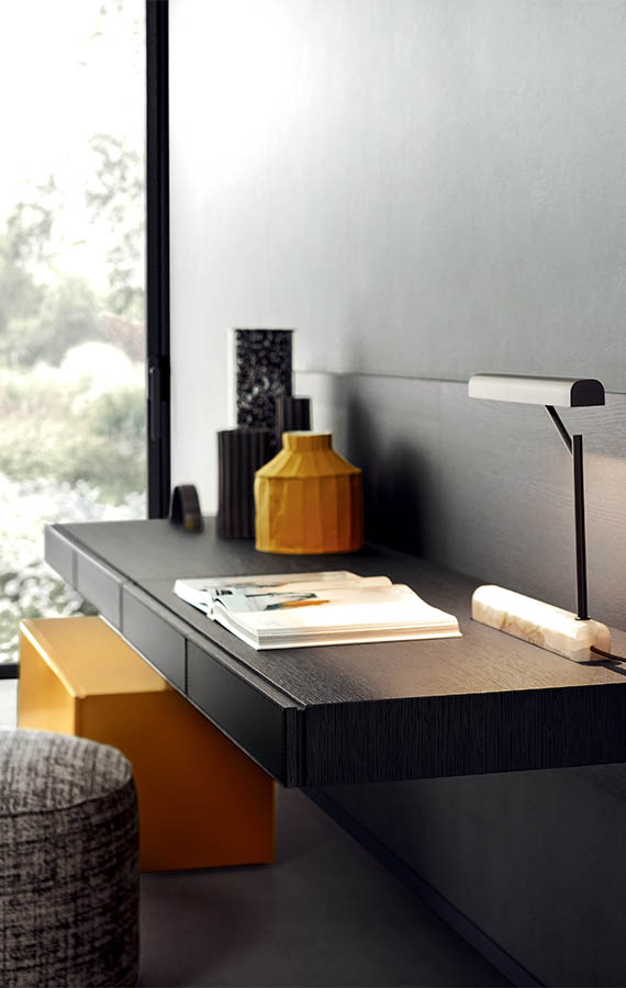 Light, solid, rigorous. Ala is a “floating desk”: practical and functional thanks to its sleek pencil drawers. The concept was born from a simple desk concept but it then evolved into a sophisticated and attractive design piece which can be used in any type of environment. It is attached to a wooden, wall hanging panel. The desk is equipped with full extension glides so you can access the full depth of the drawers. Ala can be used with both our People and Spazio collections.