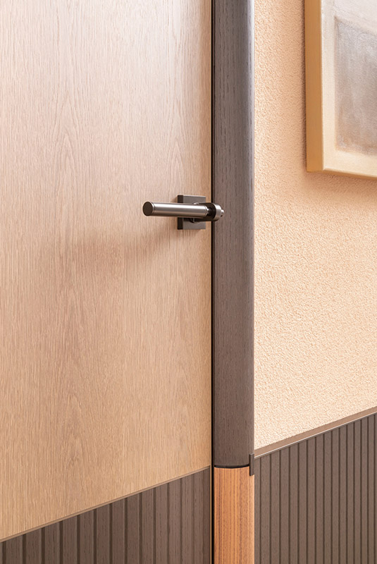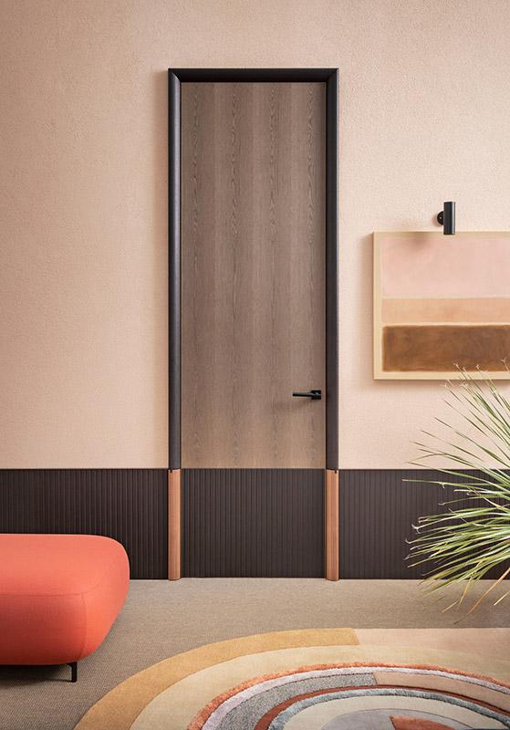 Questa porta di design è una delle più caratterizzanti dell’opera di Stern. Le specchiature, che reinterpretano le porte degli appartamenti classici della New York anteguerra, sono disponibili nella versione singola, doppia o tripla.