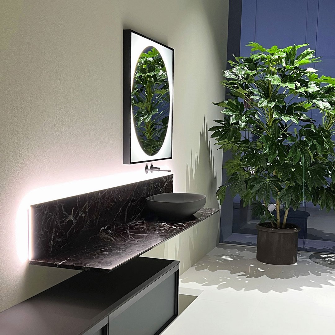 Un progetto essenziale nella forma quanto articolato nella funzione, un sistema componibile che parte da un elemento base per declinarsi in molti modi diversi, un concept che nasce dalla definizione di una semplice mensola a “L” che diventa piano d’appoggio su cui posizionare contenitori, lavabi, accessori e oggetti per l’ambiente bagno e non solo. Un corpo semplice e lineare ancorato alla parete, disponibile nella versione laccata o in essenza legno, che fa da supporto a elementi diversi per forma, materiali e colori.