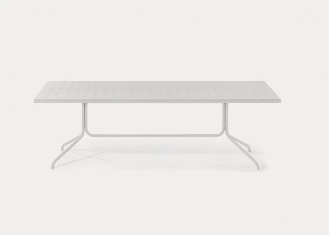 Il piacere del convivio all’aria aperta declinato in tante forme diverse: la famiglia di tavoli Brise suggerisce nuovi modi di pensare la tavola outdoor, che sia per tanti ospiti o per pochi intimi. Le basi dei tavoli dining sono in tubolare di acciaio inox nei colori Oxido, Slate o Pearl. Piani disponibili in lamiera forata zincata nei colori Oxido, Slate o Pearl, o in cemento con decoro nei colori grigio o bianco.
