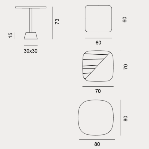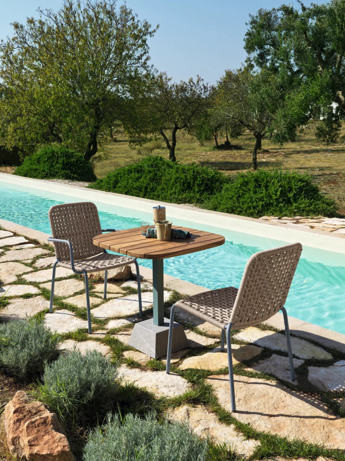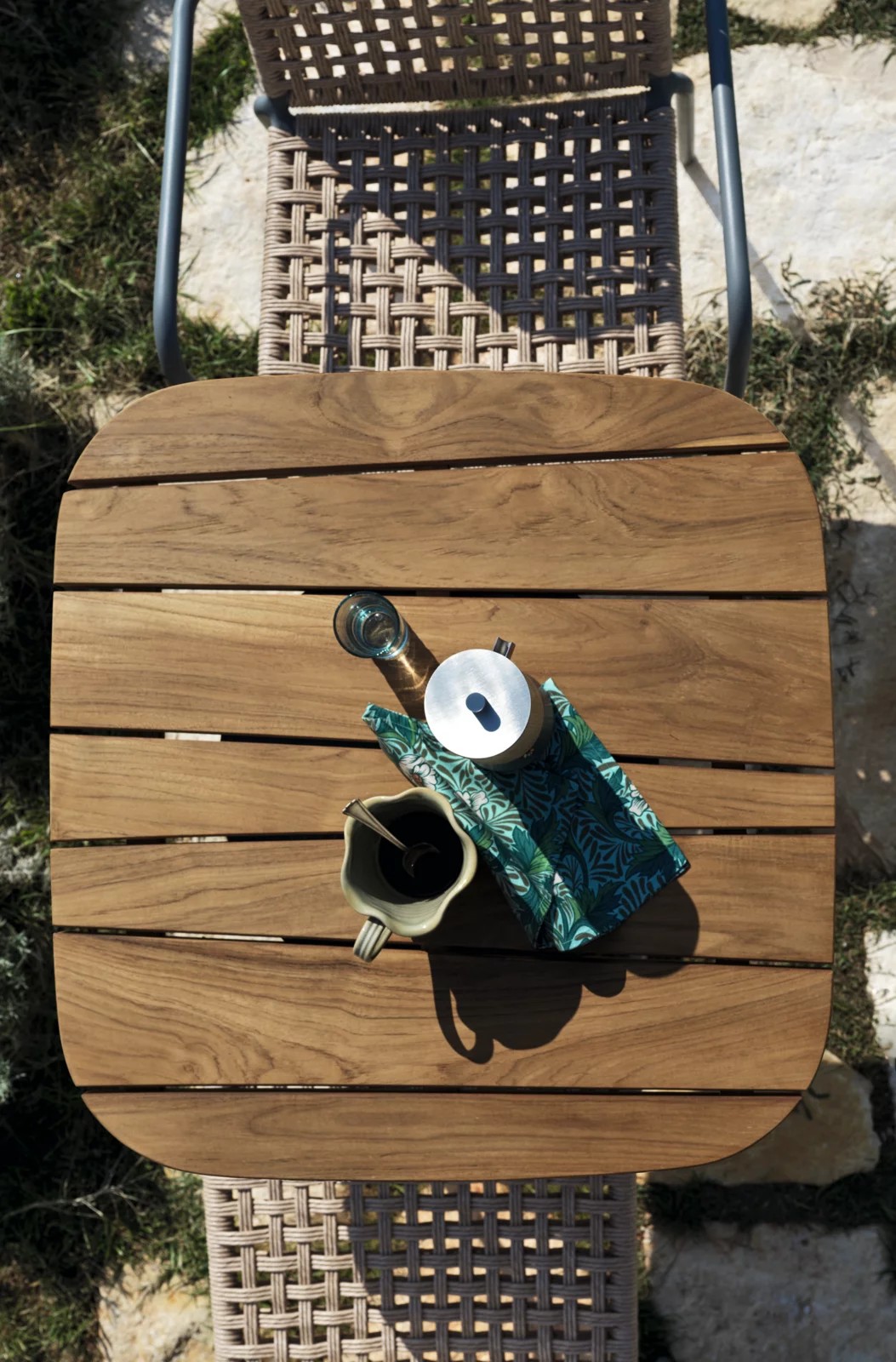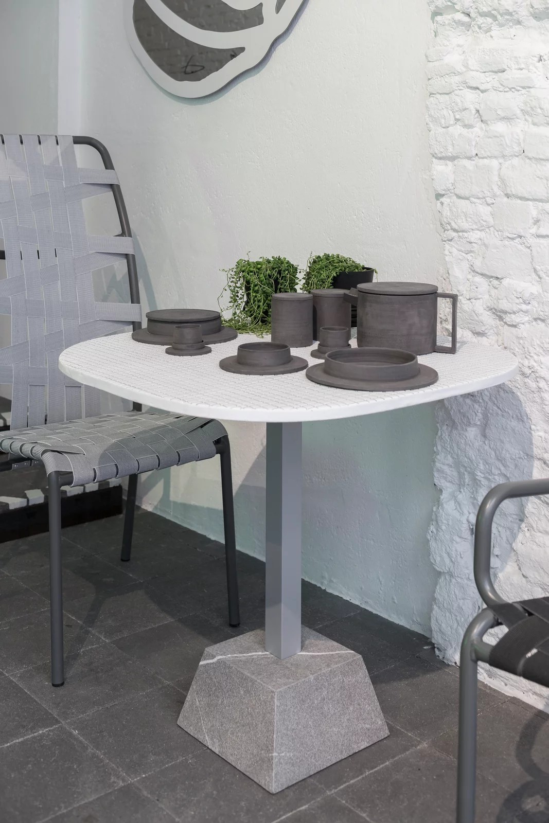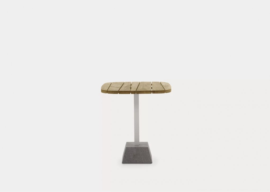Un disegno pulito definisce il tavolino Inout 137: realizzato con base in pietra Piasentina fiammata, unisce l’alluminio verniciato goffrato nei colori Pearl, Oxido, Agate, Slate, della colonna centrale, al piano quadrato disponibile a doghe di teak naturale, in marmo bianco Carrara o in gres Lecce Stone, per un prodotto dall’estrema versatilità.