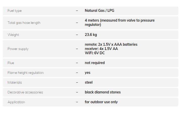 Galio H is an outdoor gas fireplace insert that offers an H-shaped flame to create a three-dimensional fire view. This unique solution will be an instant showstopper in your outdoor area, helping you to brighten the main focal point. It runs on either Natural Gas or LPG gas cylinders and is easy and convenient to use. It doesn’t require a chimney or flue so you can set it up however you like.